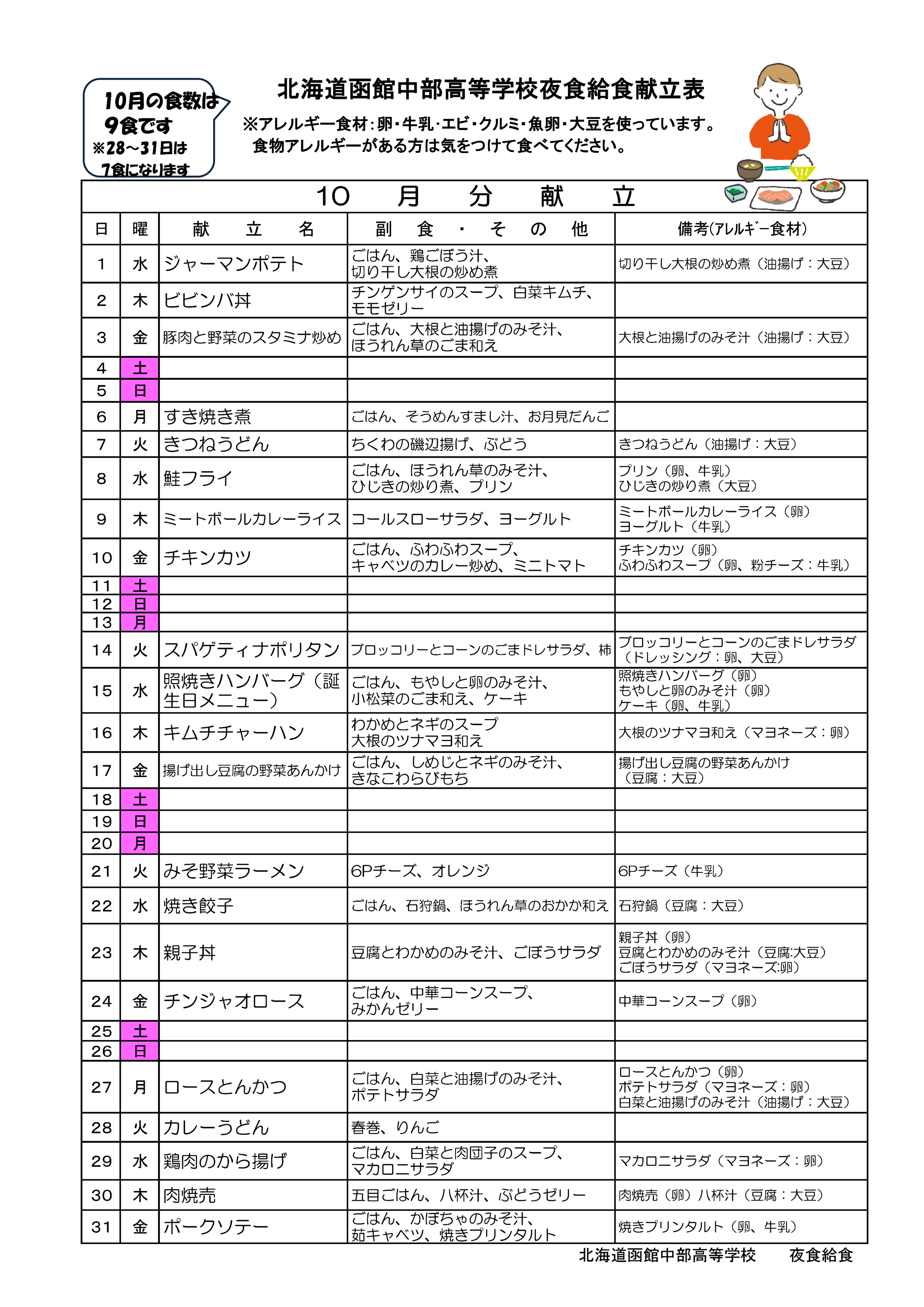 給食の献立表